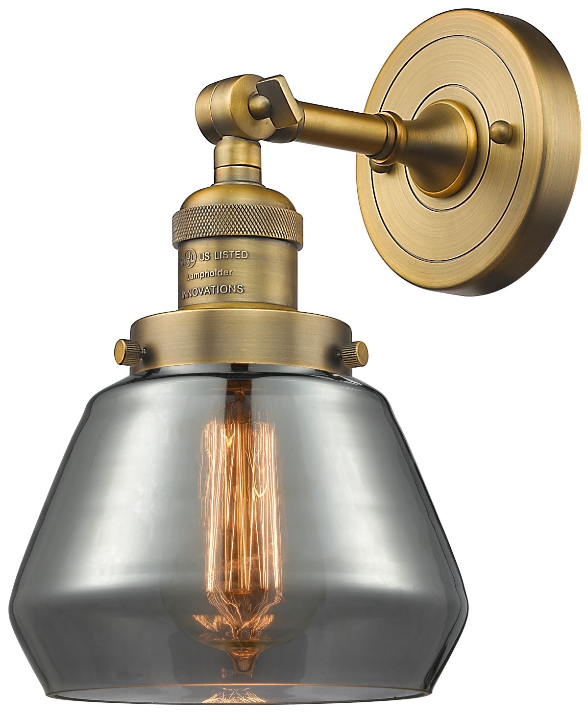 Franklin Fulton 11" High Brushed Brass Sconce w/ Plated Smoke Shade