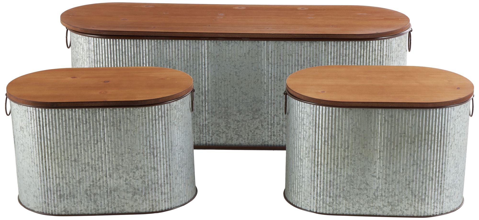 Gray Metal Farmhouse Storage Bench, S/3 48", 23", 23"W
