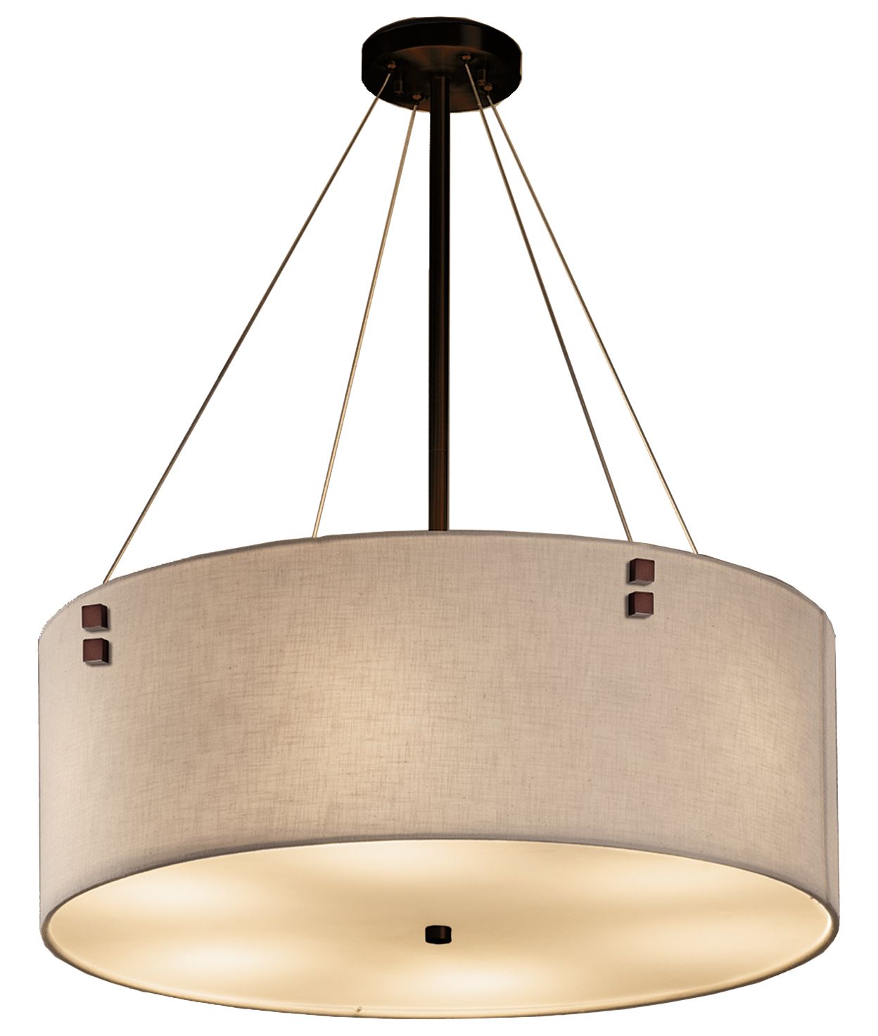 Textile - Finials 6-Light LED 24" Drum Pendant - Square - White - Bron