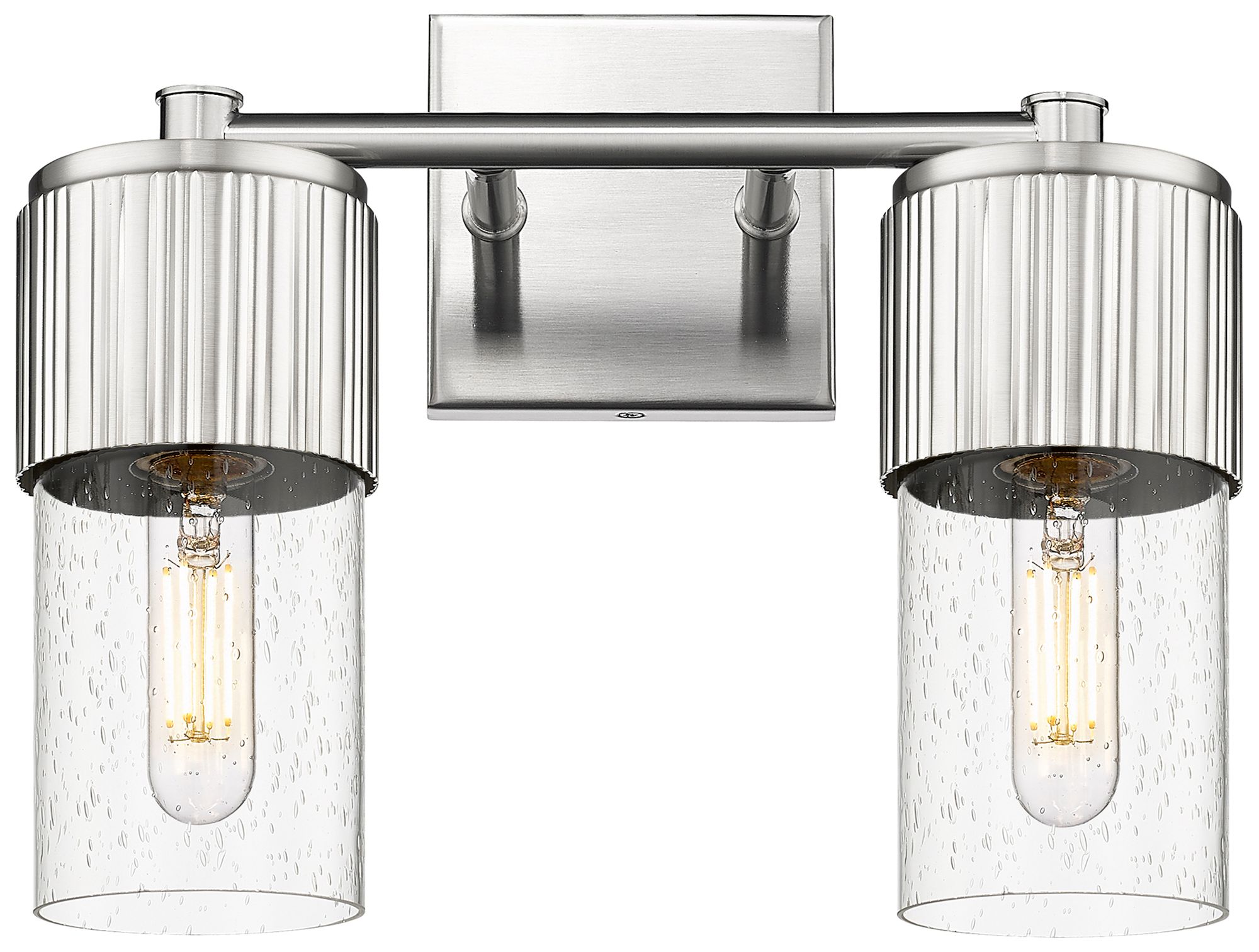 Bolivar 9.5" High 2 Light Satin Nickel Sconce With Seedy Glass Shade