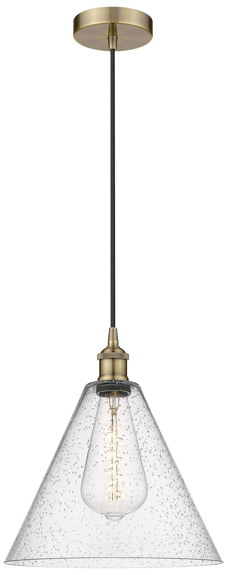 Berkshire 12" Wide Antique Brass Corded Mini Pendant w/ Seedy Shade