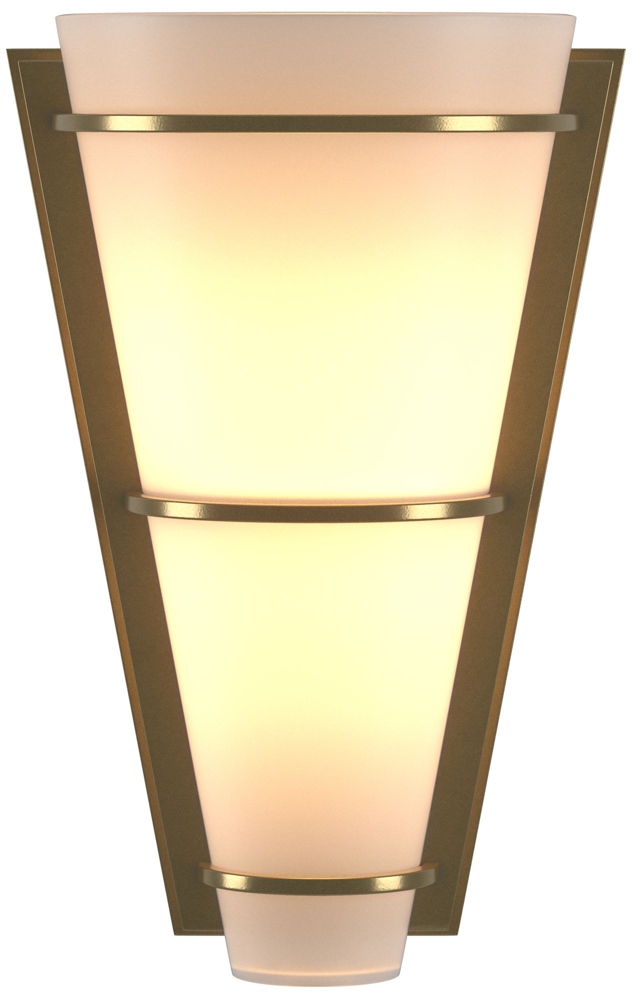Suspended Half Cone 10" High Modern Brass Sconce With Opal Glass Shade