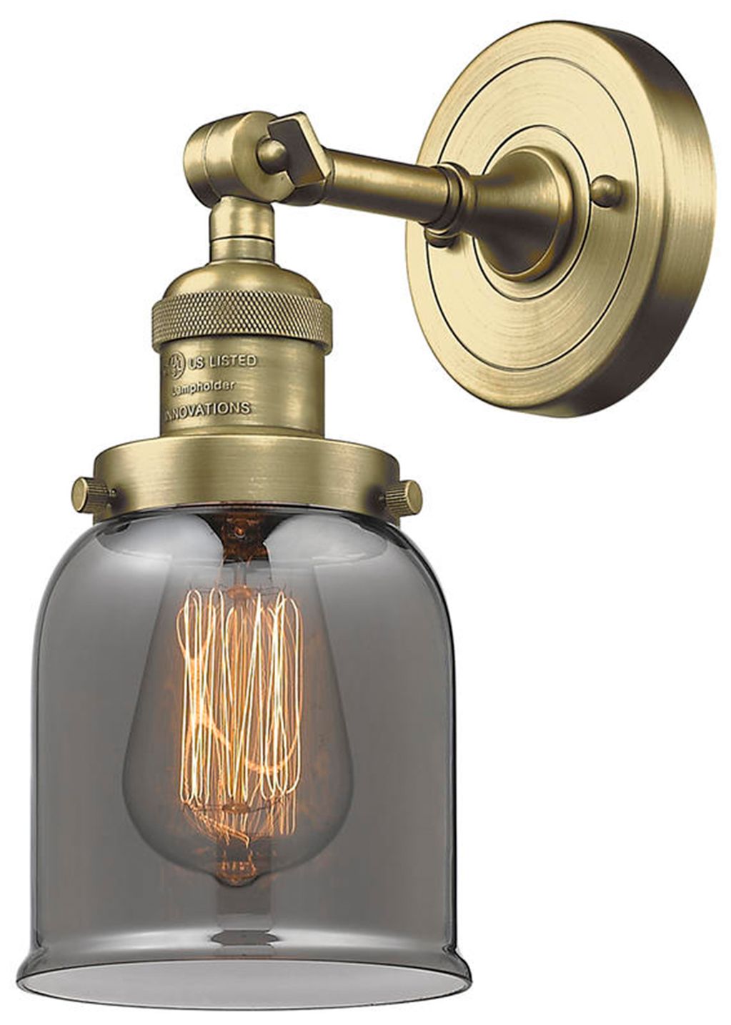 Bell 5" Antique Brass Sconce w/ Plated Smoke Shade