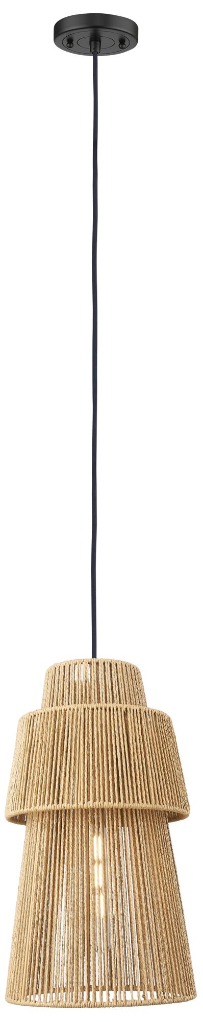 Twill 10" Wide Matte Black Cord Hung Pendant with Natural Shade