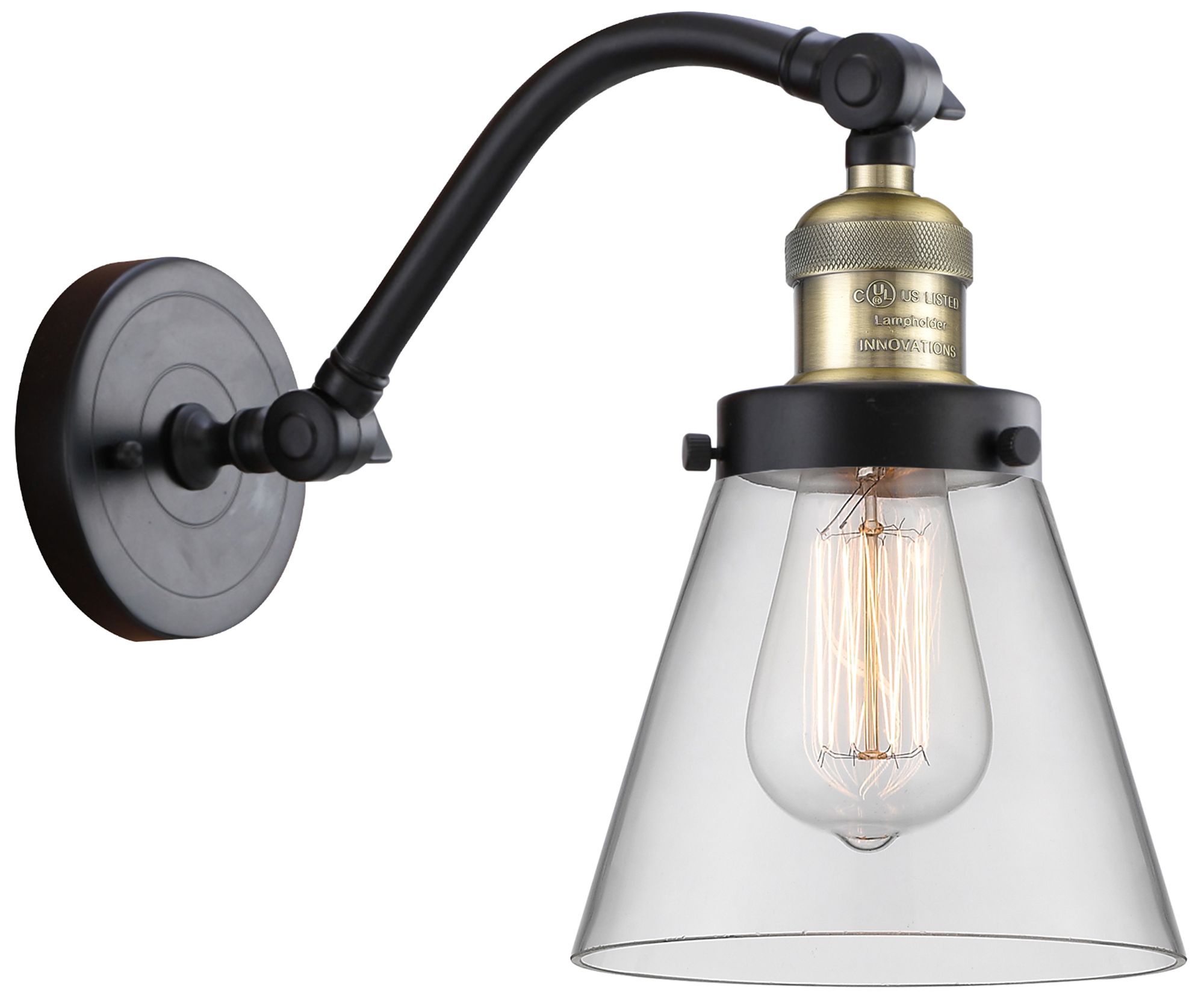 Cone 7" Black Antique Brass Sconce w/ Clear Shade