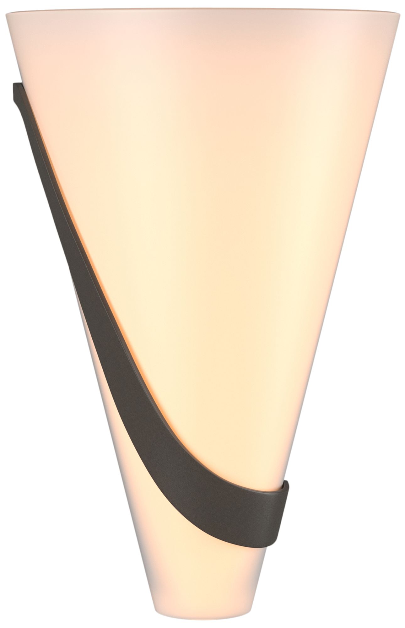 Half Cone 12" High Left Orientation Dark Smoke Sconce With Opal Glass