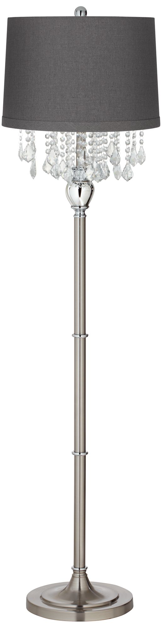 Crystals 60 1/2" Satin Steel Floor Lamp with Gray Drum Shade