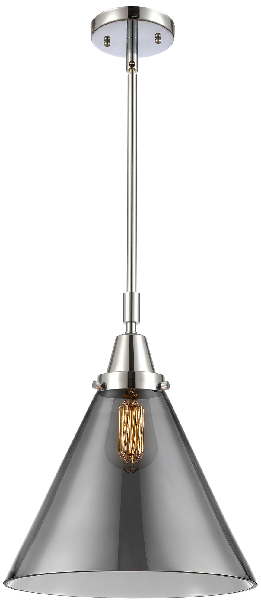 Caden Cone 12"W Polished Chrome Stem Hung Mini Pendant w/ Smoke Shade