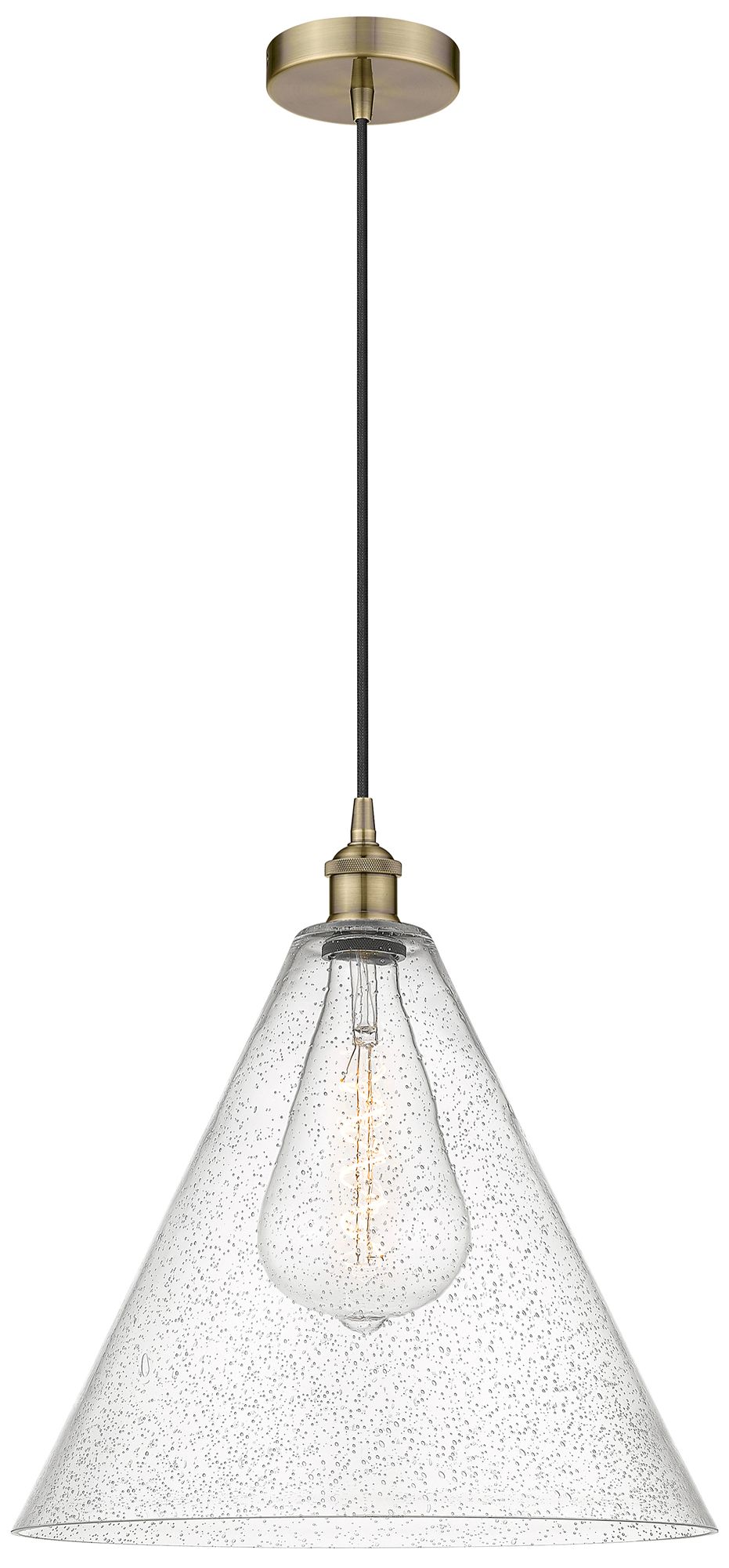 Berkshire 16" Wide Antique Brass Corded Mini Pendant w/ Seedy Shade