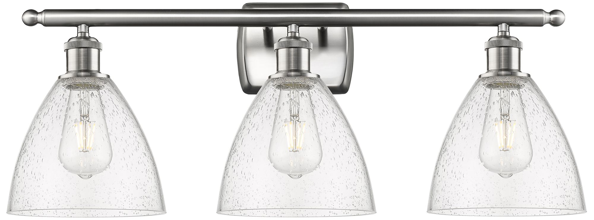 Bristol Glass 3 Light 28" LED Bath Light - Brushed Satin Nickel - Seed