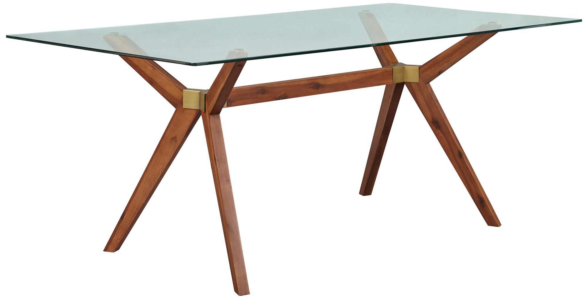 Denali 75" Wide Walnut Wood Dining Table with Glass Top