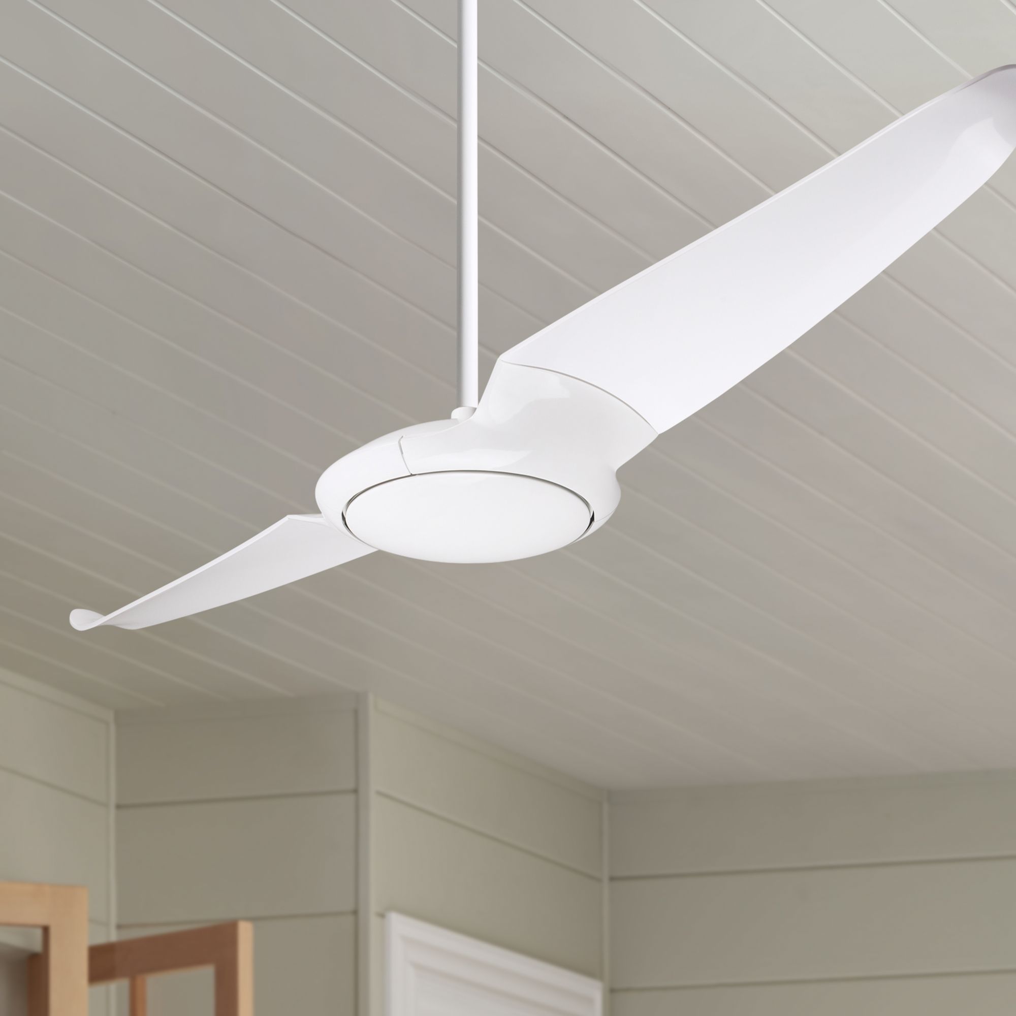 56" Modern Fan IC/Air2 Gloss White 2-Blade Damp Rated Fan with Remote