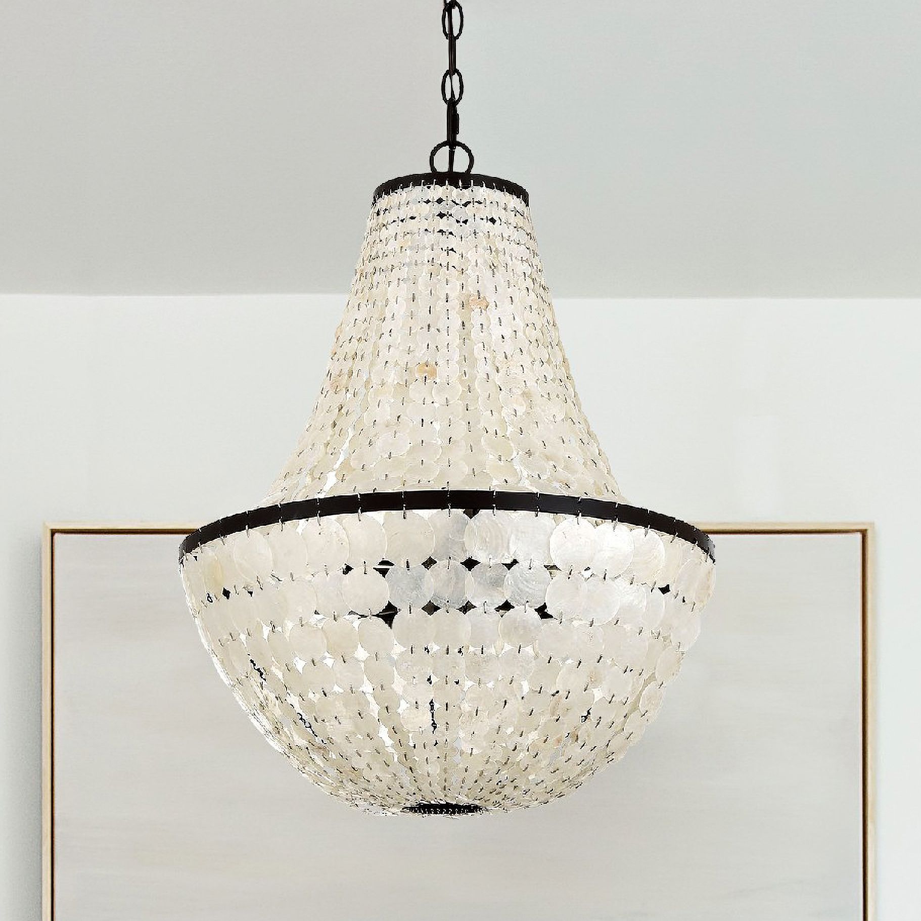 Birelle 18" Wide Dark Bronze Cream Shell 6-Light Chandelier