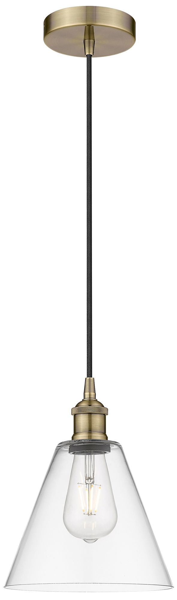 Berkshire 8" Wide Antique Brass Corded Mini Pendant w/ Clear Shade