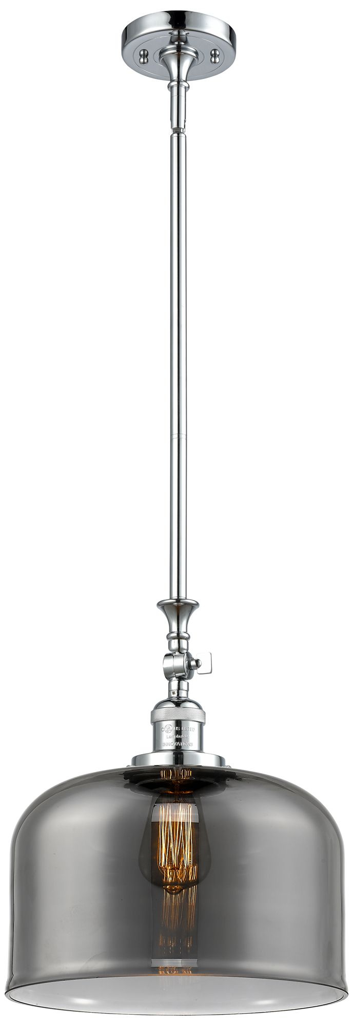 Bell 12" Polished Chrome Stem Hung Mini Pendant w/ Plated Smoke Shade