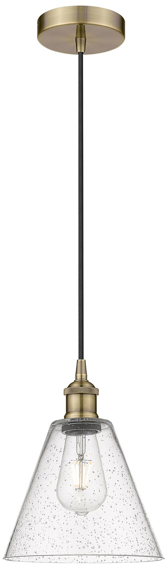 Berkshire 8" Wide Antique Brass Corded Mini Pendant w/ Seedy Shade