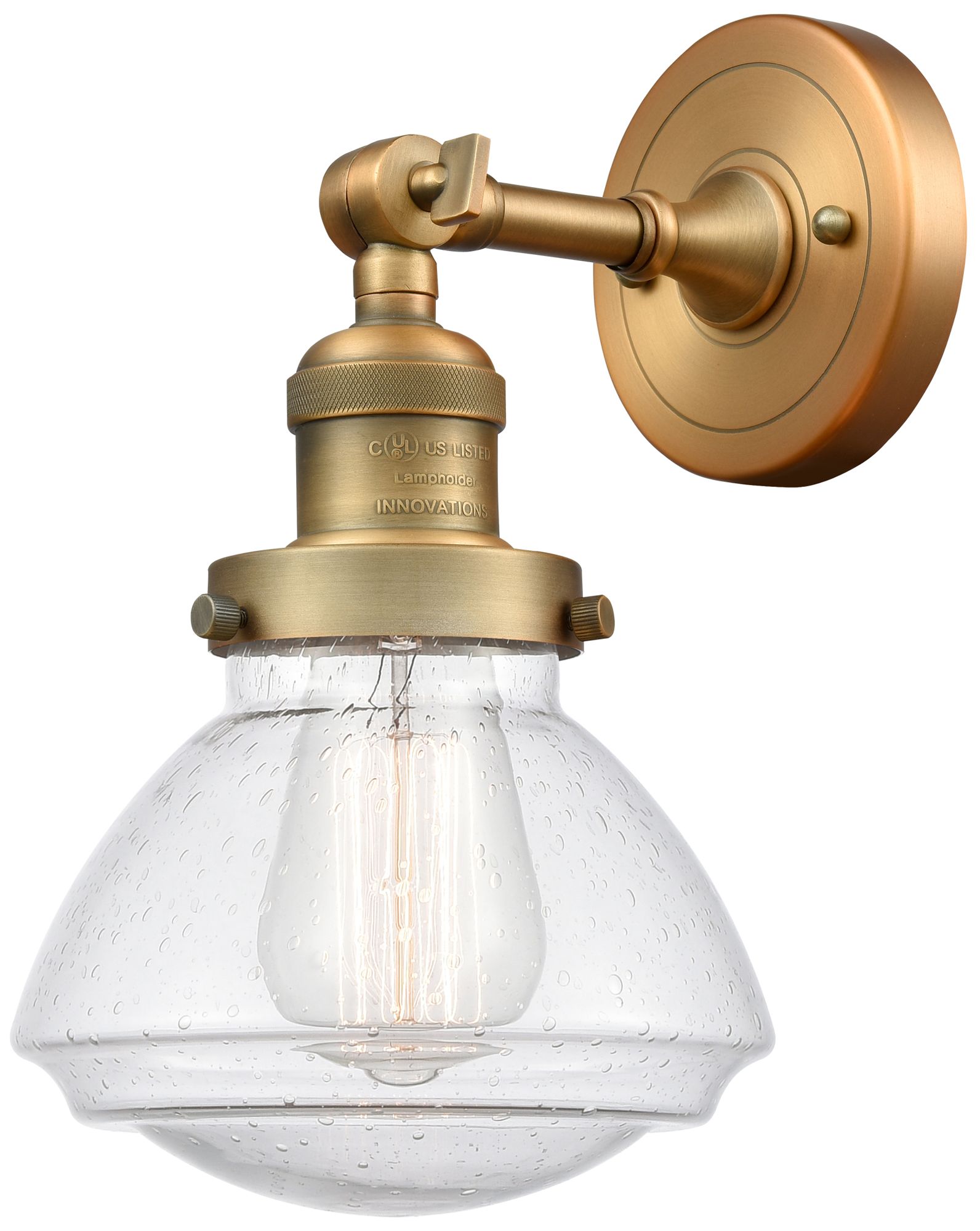 Franklin Olean 7.75" High Brushed Brass Sconce w/ Seedy Shade