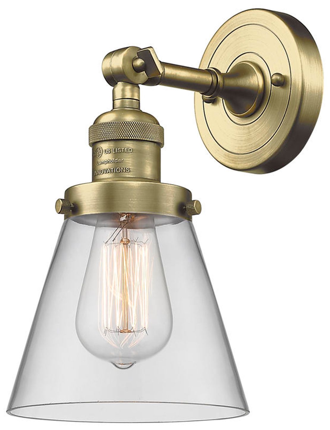 Cone 6" Antique Brass Sconce w/ Clear Shade