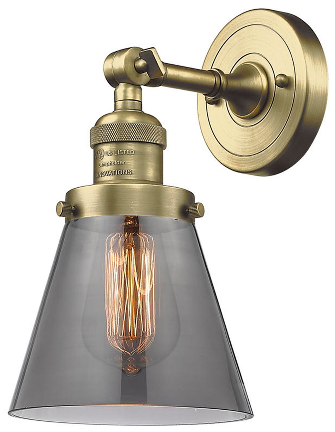 Cone 6" Antique Brass Sconce w/ Plated Smoke Shade