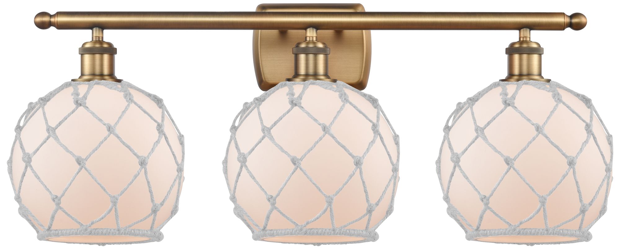 Farmhouse 26" 3-Light Brushed Brass Bath Light w/ White Rope Shade