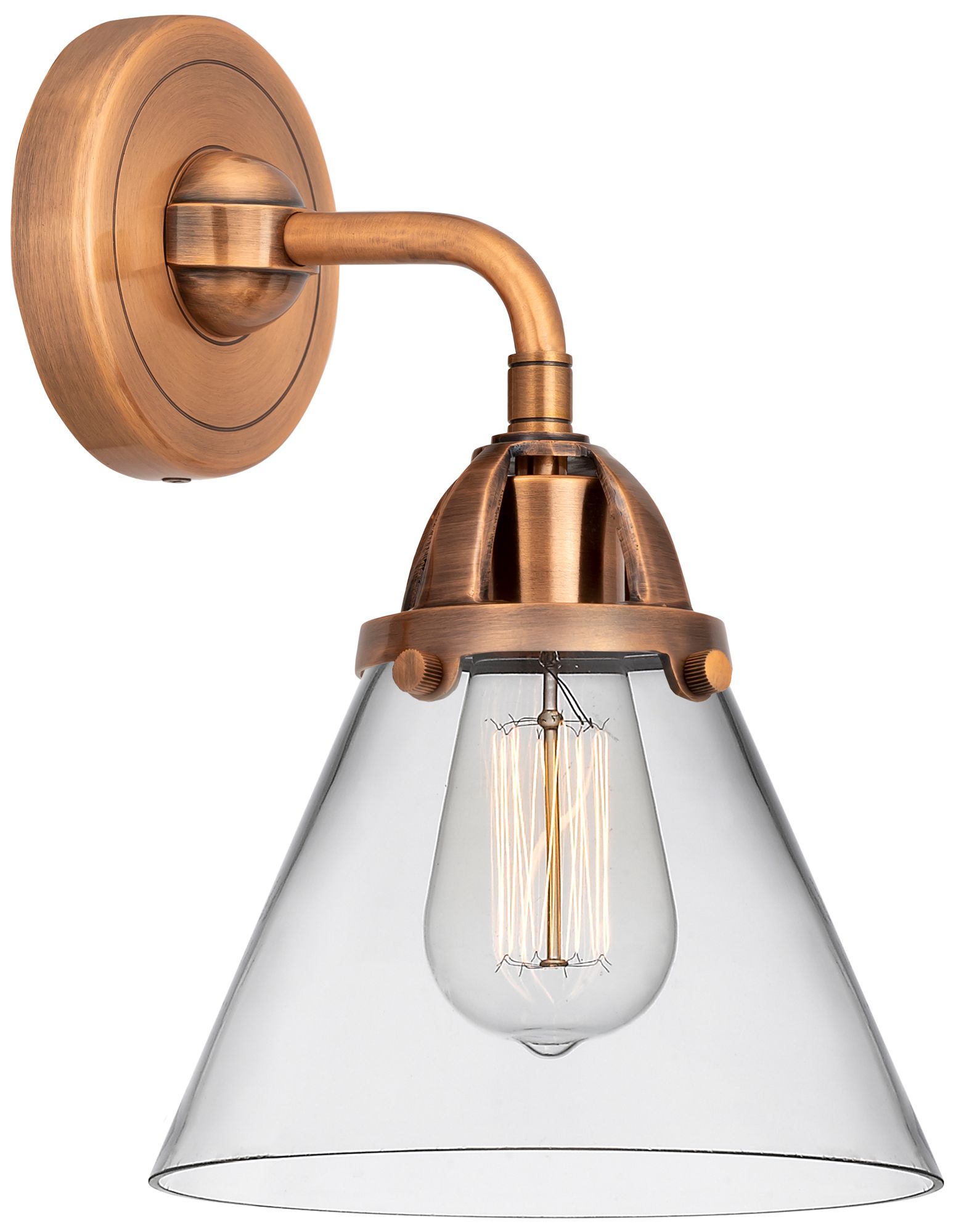 Nouveau 2 Cone 8" Incandescent Sconce - Copper Finish - Clear Shade