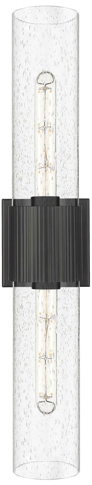 Bolivar 4" Wide 2 Light Matte Black Bath Light With Seedy Glass Shade