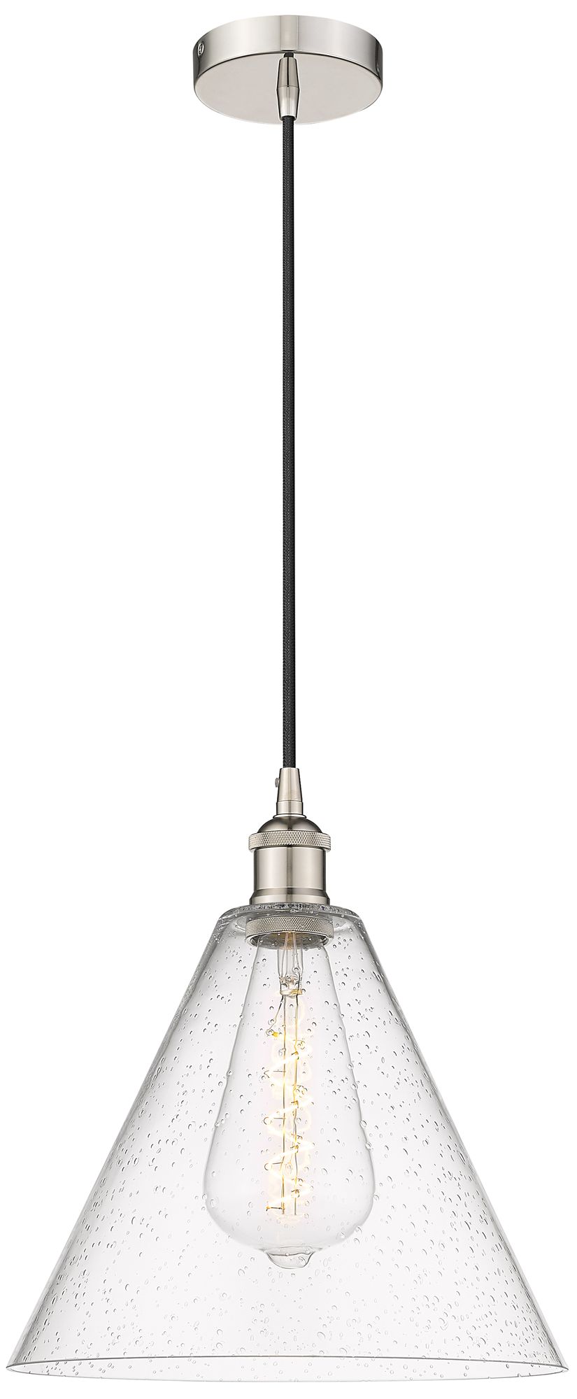 Edison Glass Cone 12" Polished Nickel Cord Hung Mini Pendant w/ Seedy