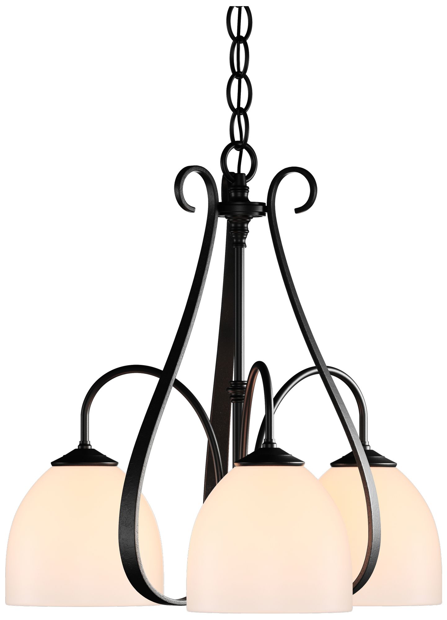 Sweeping Taper 18.4" Wide 3 Arm Black Chandelier With Opal Glass