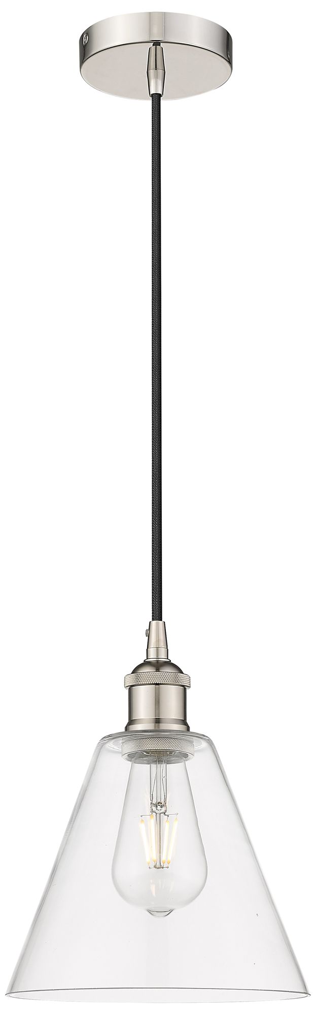 Edison Glass Cone 8" Polished Nickel Cord Hung Mini Pendant w/ Clear S