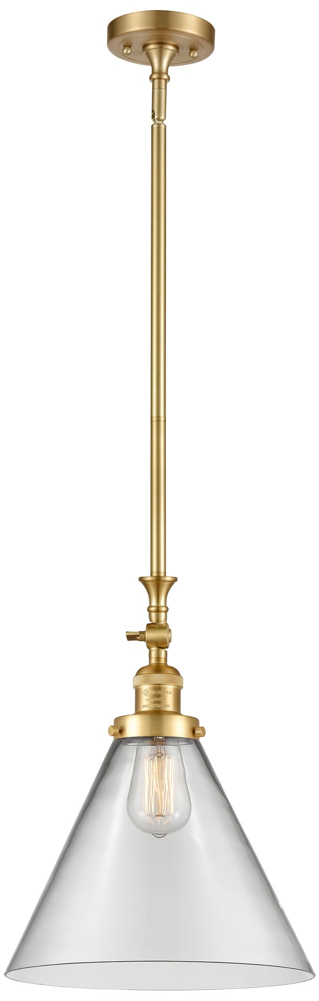 Cone 12" Wide Satin Gold Stem Hung Tiltable Mini Pendant w/ Clear Shad