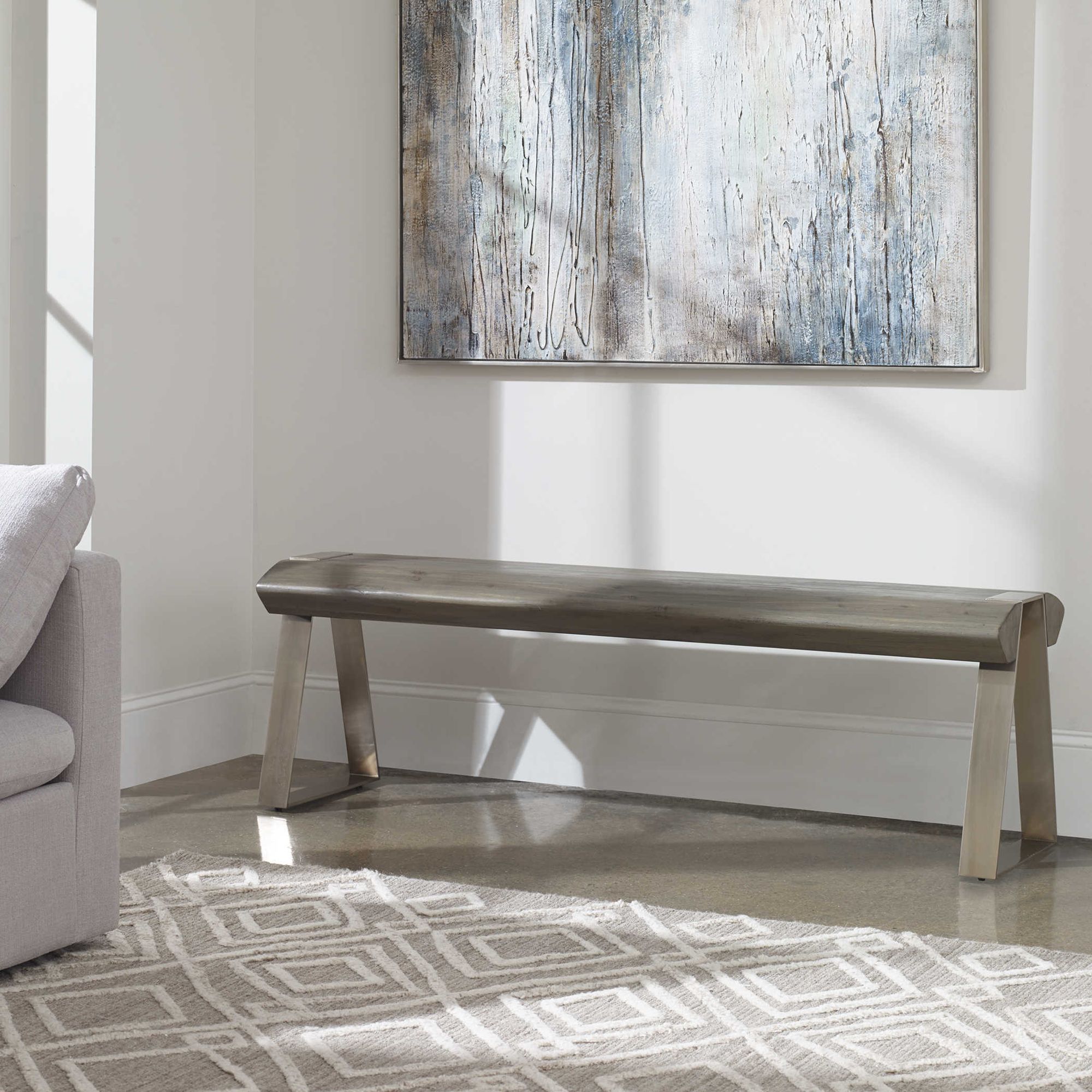 Uttermost Acai 60" Wide Light Gray Wash Accent Bench