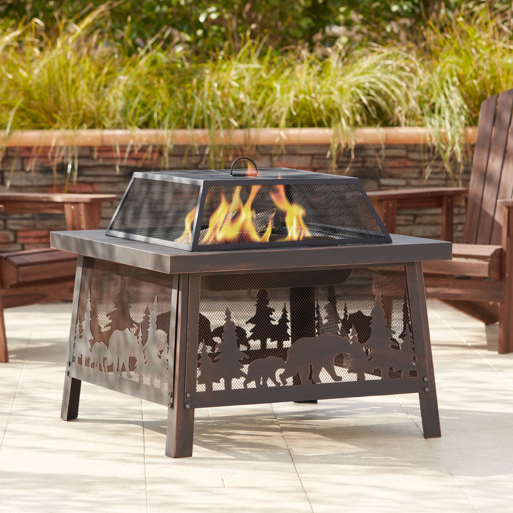 Denali 35" Wide Bronze Forest Bears Square Wood Burning Fire Pit