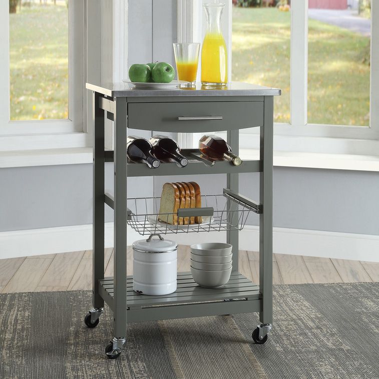Zoey 22 3/4" Wide Gray Wood and Stainless Steel Kitchen Cart