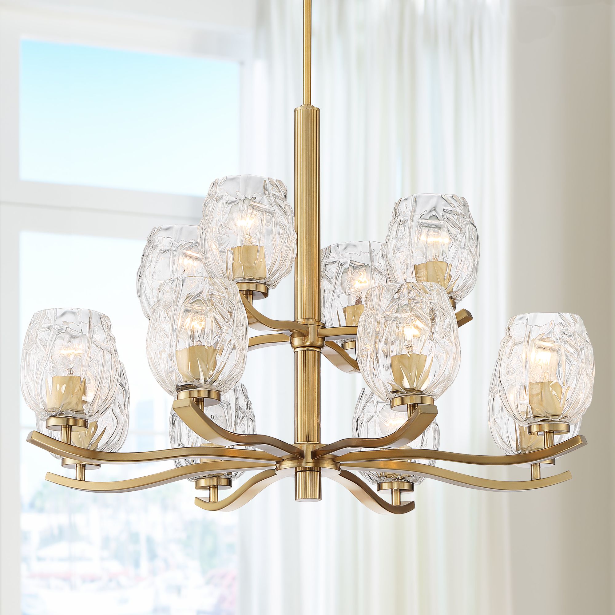 Stiffel Veronica 33 1/4" Wide Gold and Glass 12-Light Chandelier