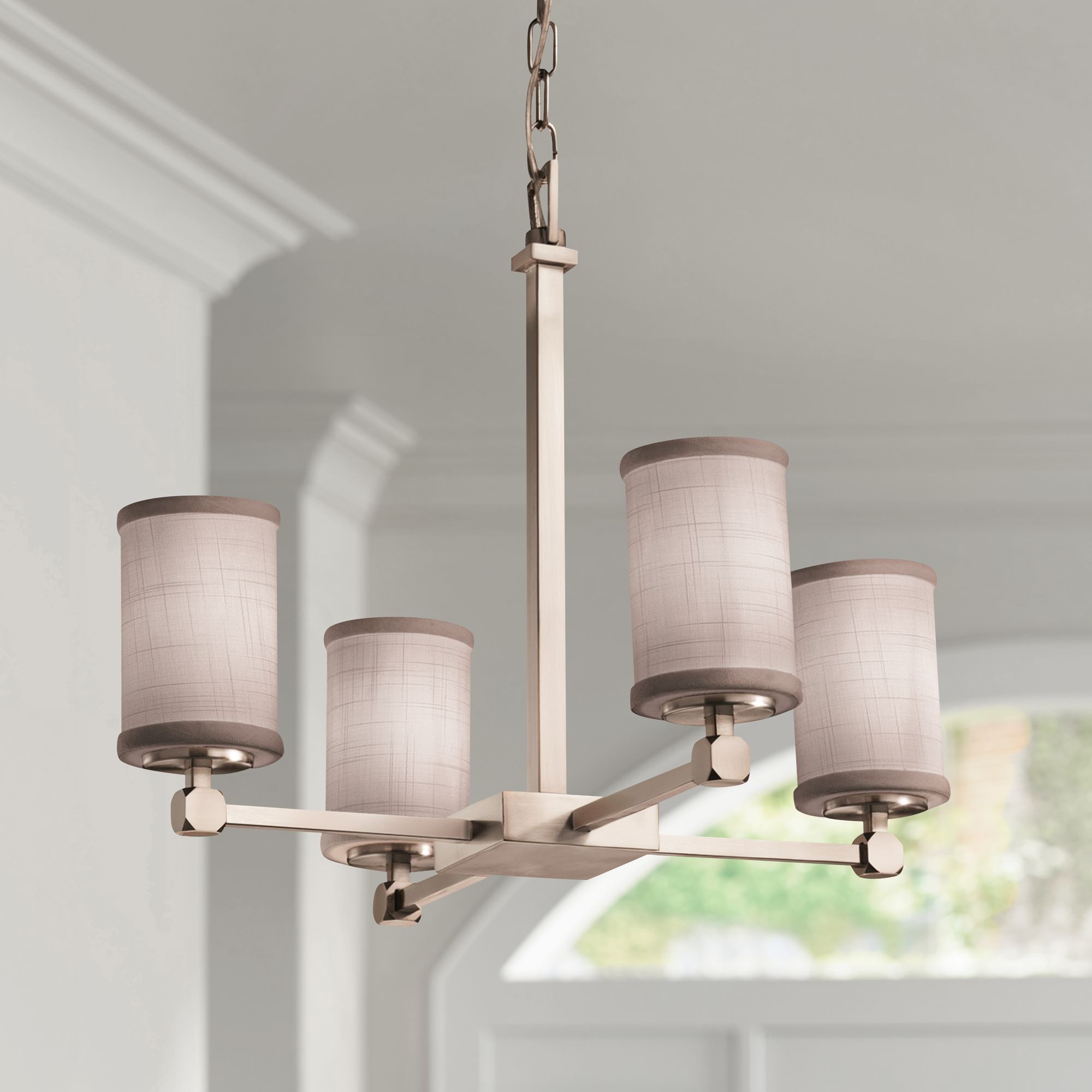 Justice Design Textile 21" Chrome and Gray LED Shade Chandelier
