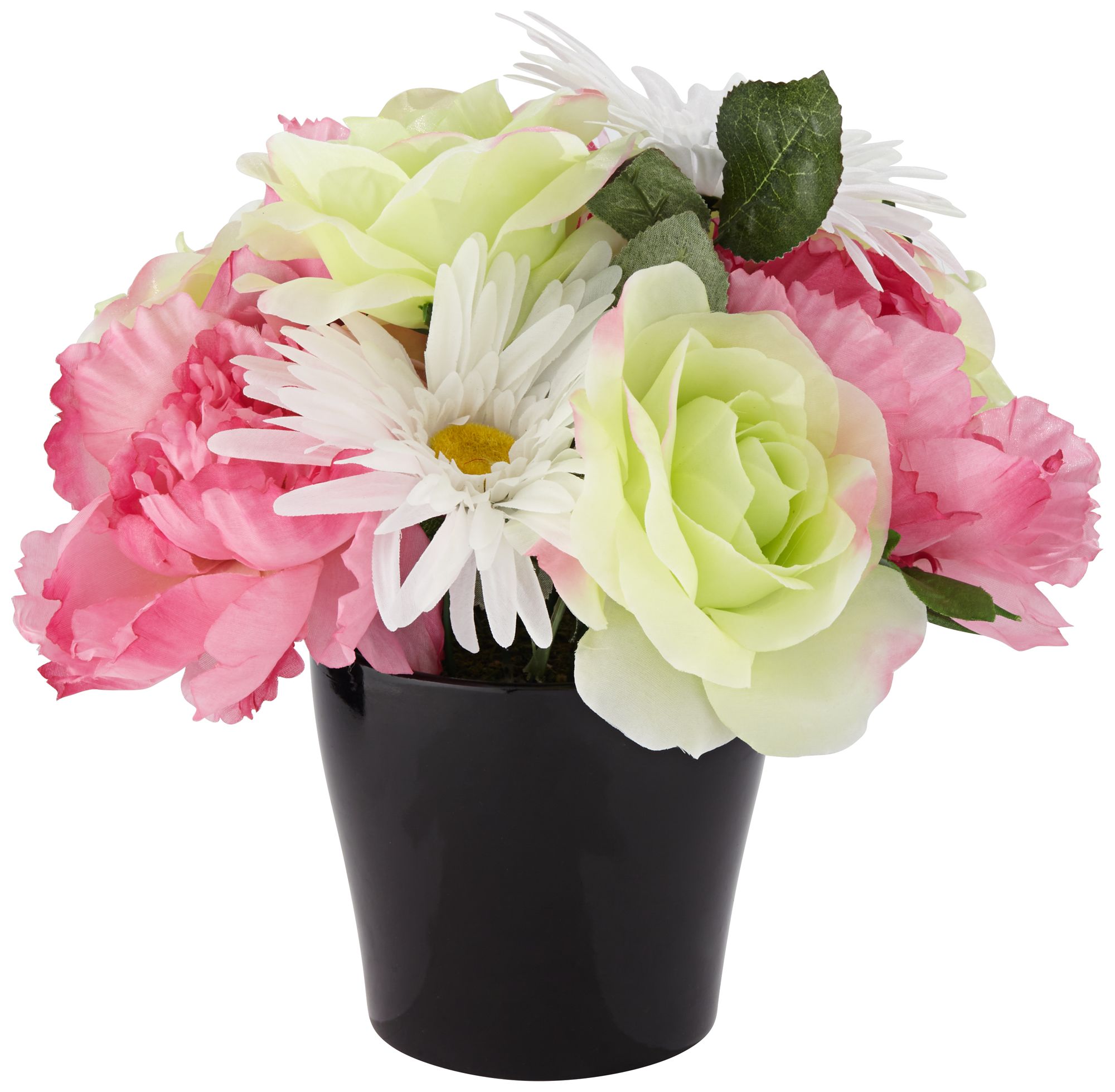 Pink Peonie and Green Rose 10 1/2" High Faux Flowers in Pot