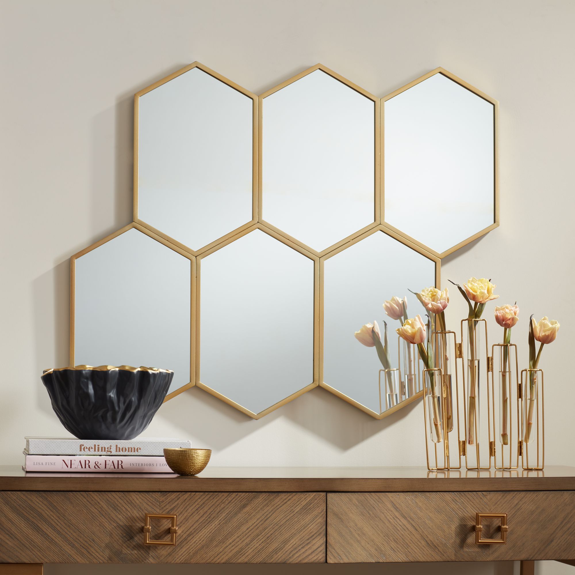 Troye Gold Metal 35 1/2" x 29 1/2" 6-Hexagonal Wall Mirror