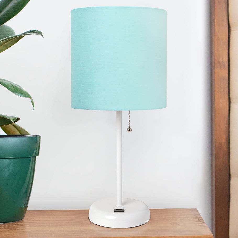 Oslo 19 1/2" High White USB Table Desk Lamp with Aqua Shade
