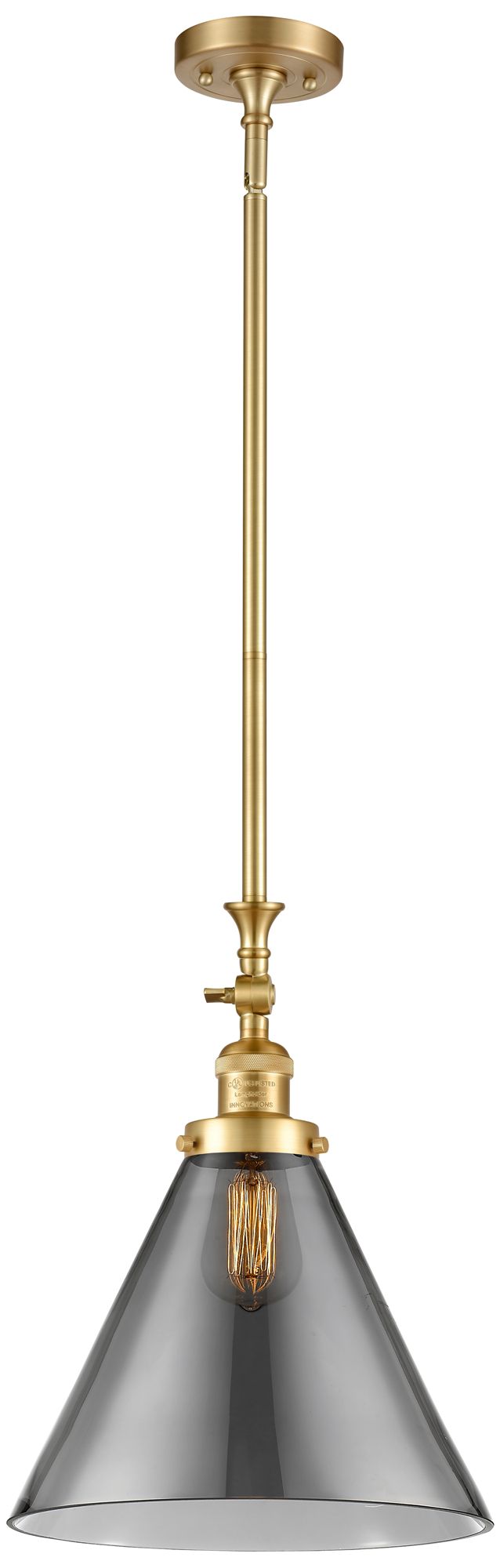 Cone 12" Wide Gold Stem Hung Tiltable Mini Pendant w/ Plated Smoke Sha