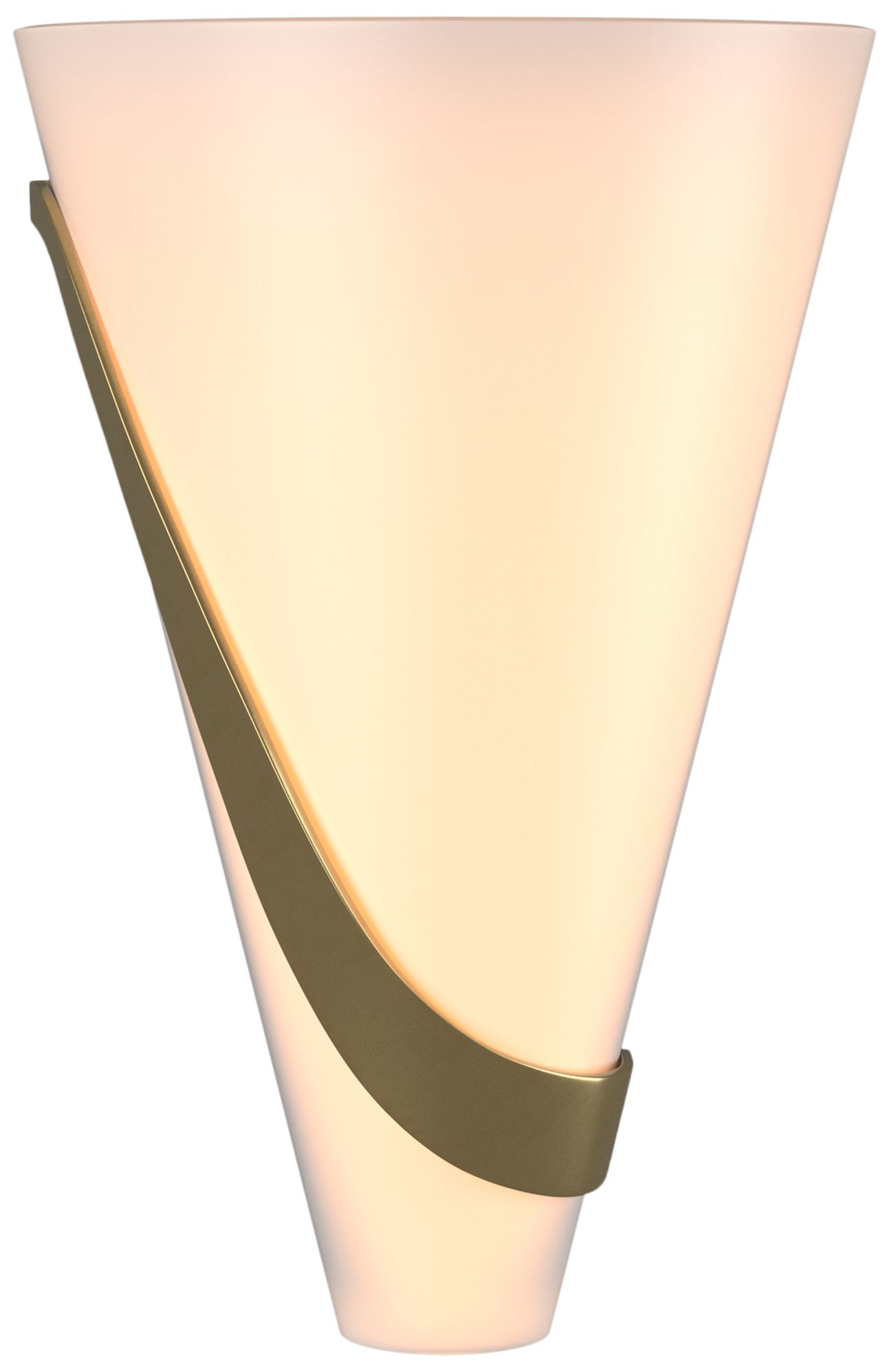 Half Cone 12"H Left Orientation Modern Brass Sconce With Opal Glass Sh