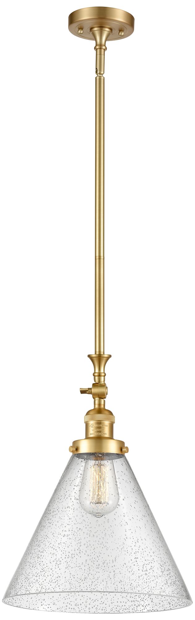 Cone 12" Wide Satin Gold Stem Hung Tiltable Mini Pendant w/ Seedy Shad