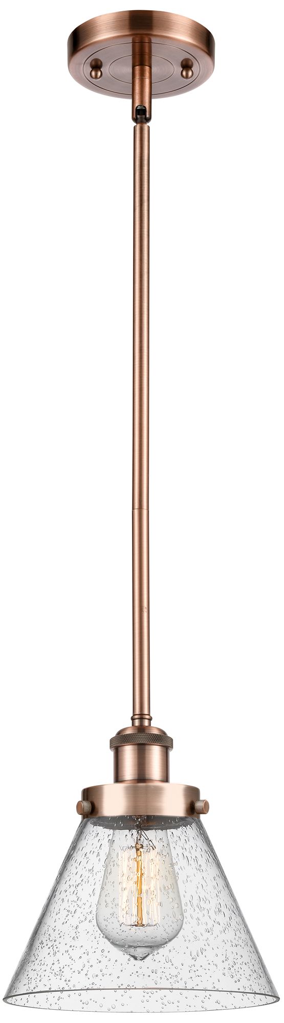 Ballston Urban Cone 8" Antique Copper Stemmed Mini Pendant w/ Seedy Sh