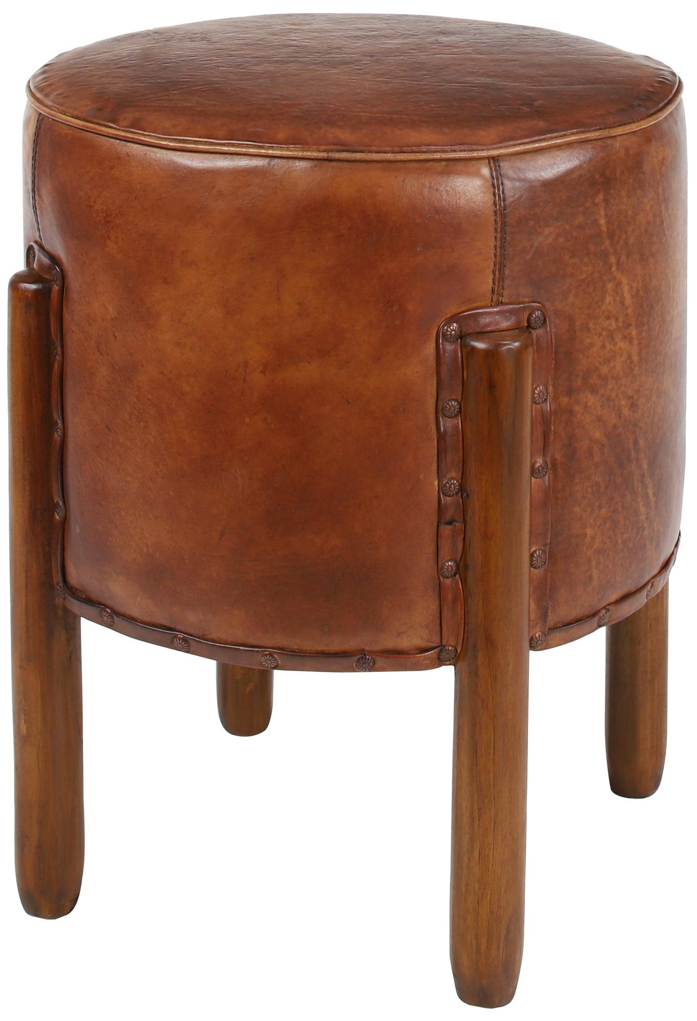 Brown Teak Wood Traditional Stool, 17" x 17" x 20"