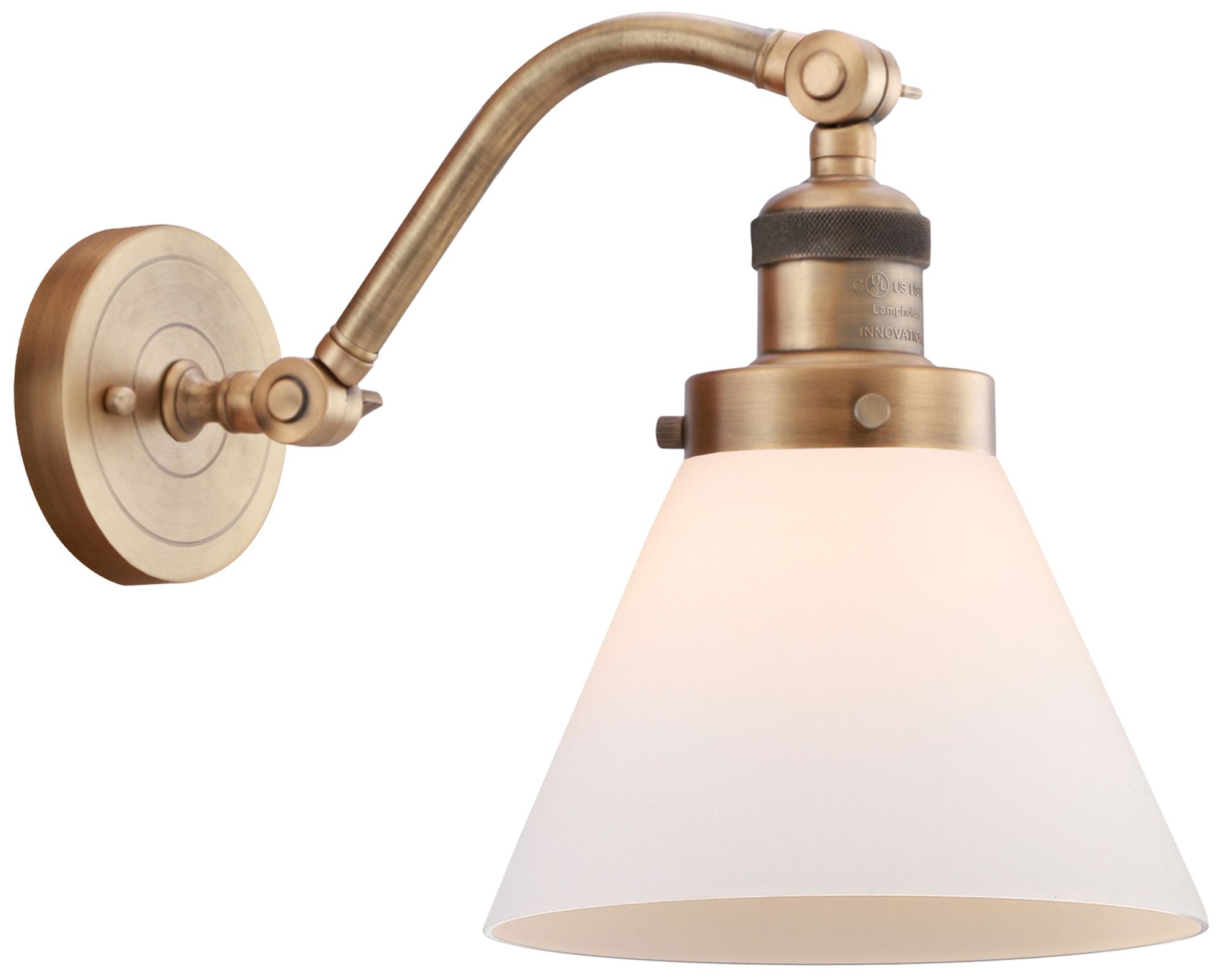 Cone 8" Brushed Brass Sconce w/ Matte White Shade
