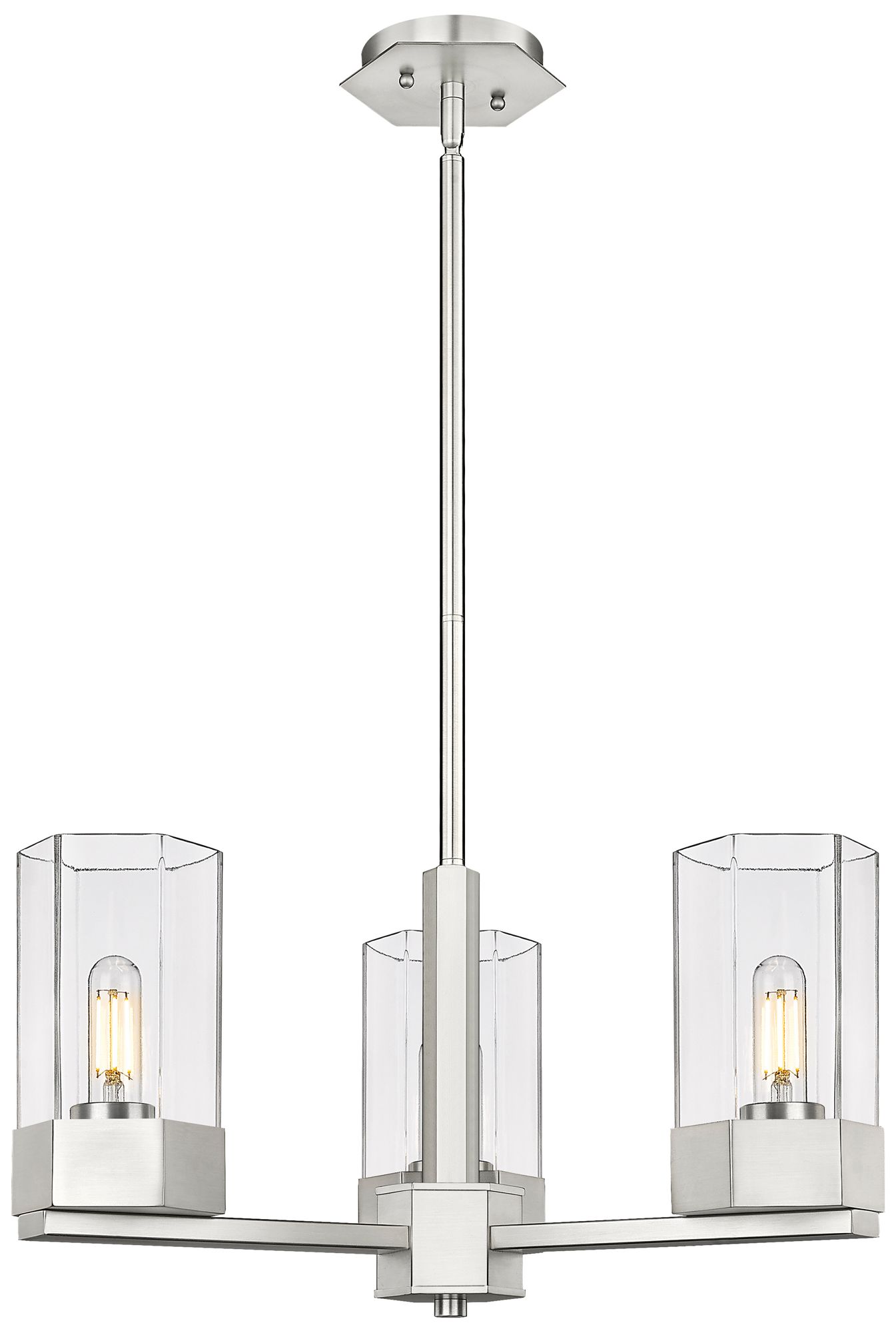 Claverack 21.63"W 3 Light Satin Nickel Stem Hung Pendant With Clear Sh