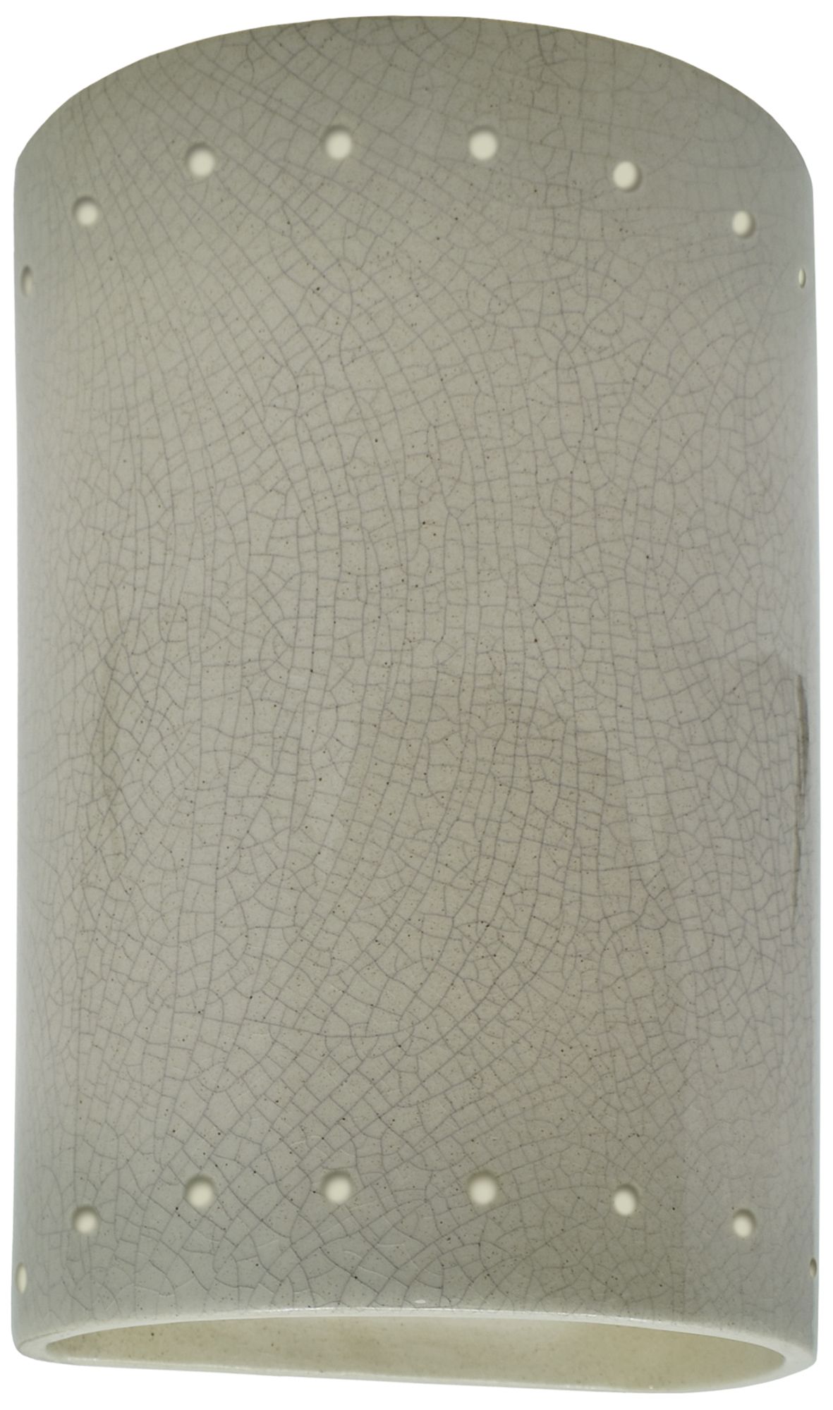 9.5" Ceramic Cylinder ADA Celadon LED Outdoor Sconce w/ Perfs