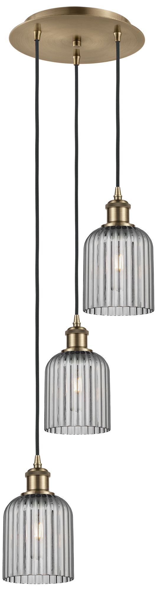 Ballston Bridal Veil 3 Light 12" Cord Hung MultiPendant Antique Brass/Smoke