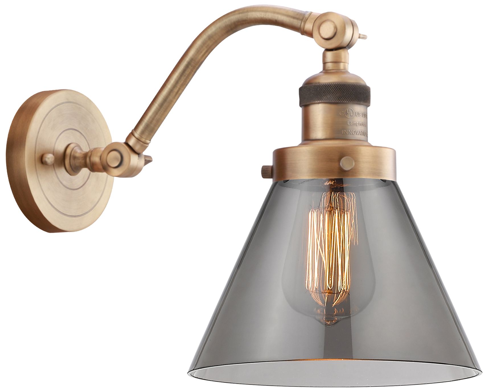 Cone 8" Brushed Brass Sconce w/ Plated Smoke Shade