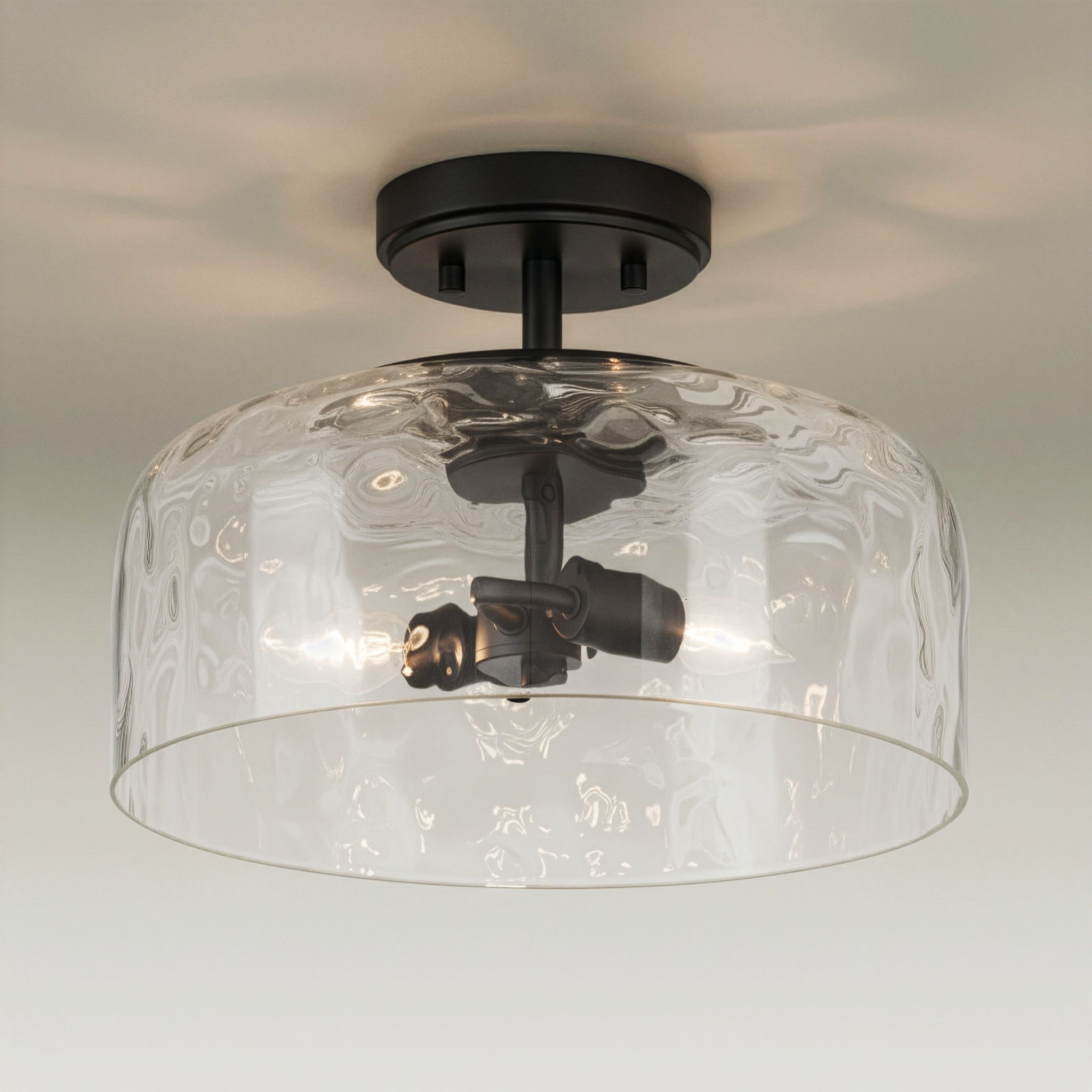 Possini Euro Luther 13"W Matte Black Water Glass 2-Light Ceiling Light
