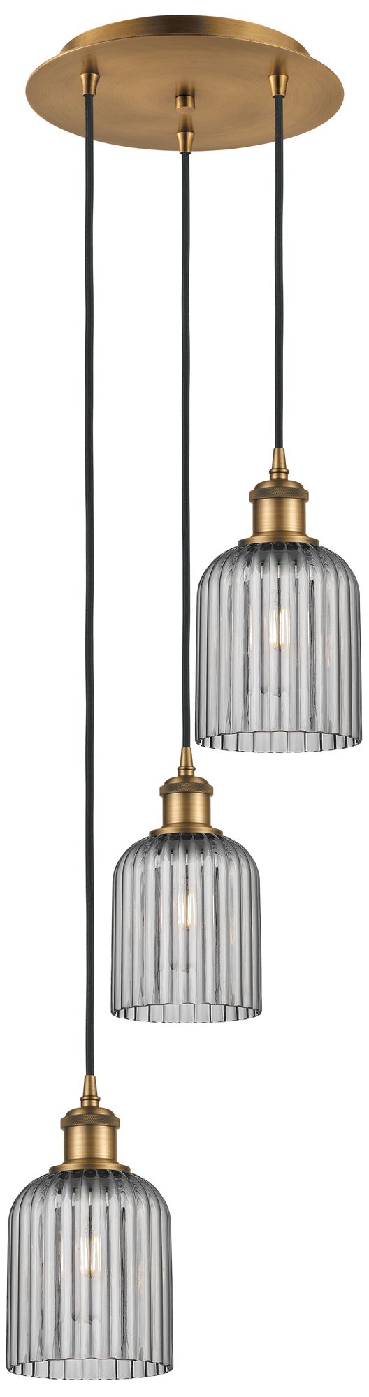 Ballston Bridal Veil 3 Light 12" Cord Hung Multi Pendant Brass/Smoke Shade